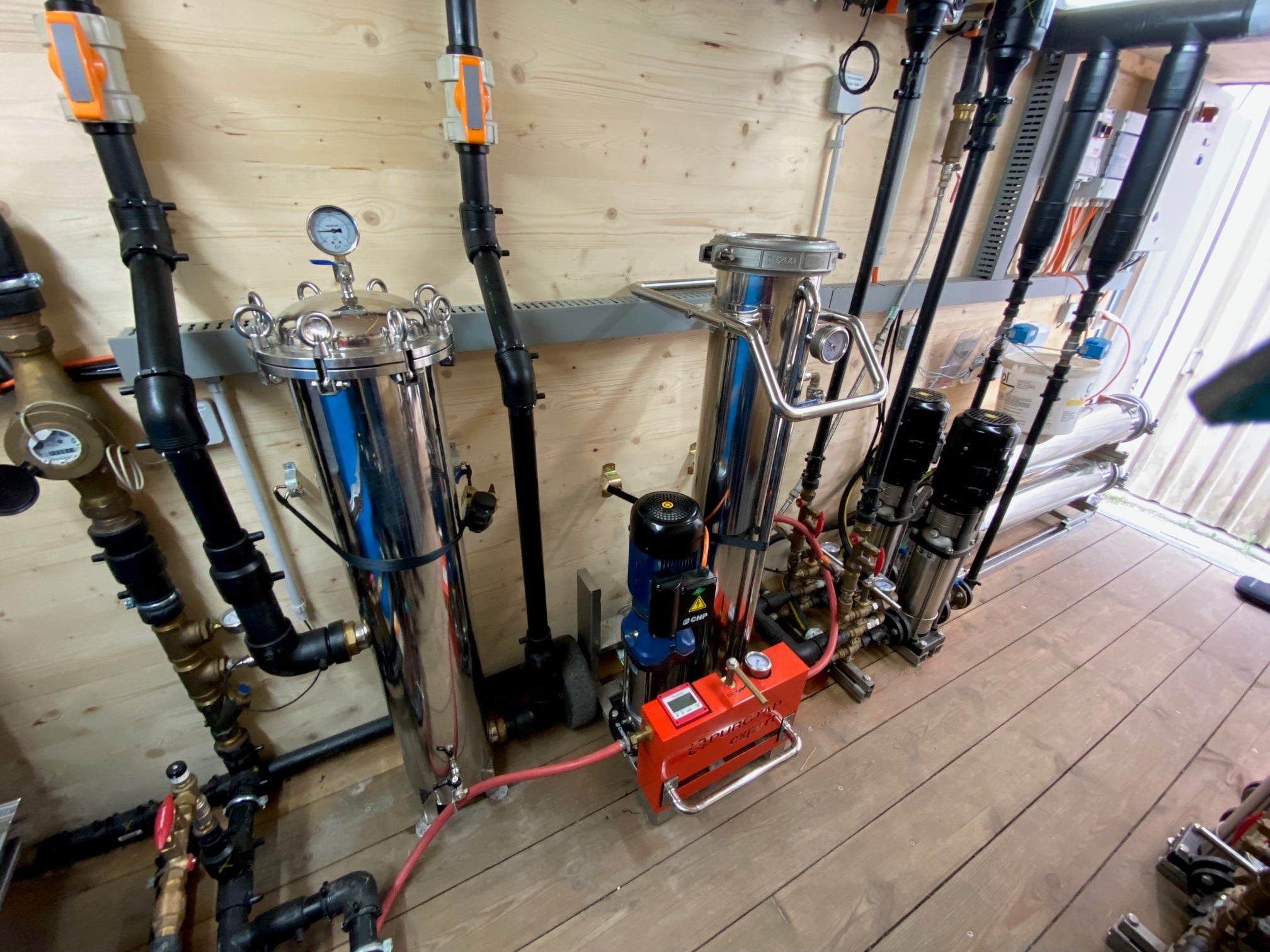 Das Wasser wird vor Ort aufbereitet (Umkehrosmose + Nachbehandlung) und exakt auf die Anforderungen der Anlage abgestimmt.